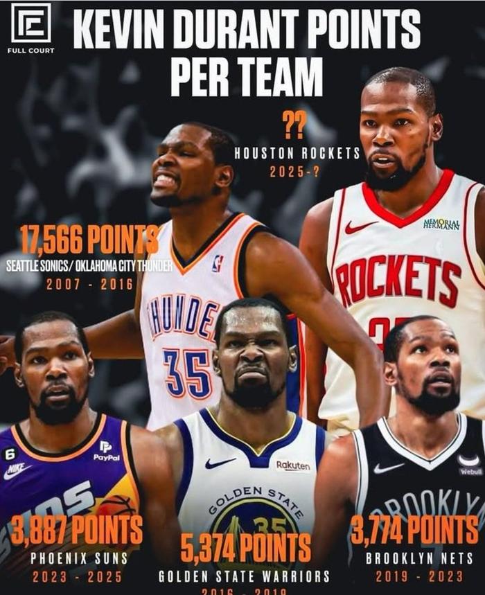 外界普遍认为杜兰特新赛季场均得分不会有太大下滑至少是20+的水准,因为这支球队能力太强所以杜兰特不需要每一晚都去竞争30+,他身边的申京也是场均接近20+10的选手,KD可以节省体能去打末节决胜时刻。