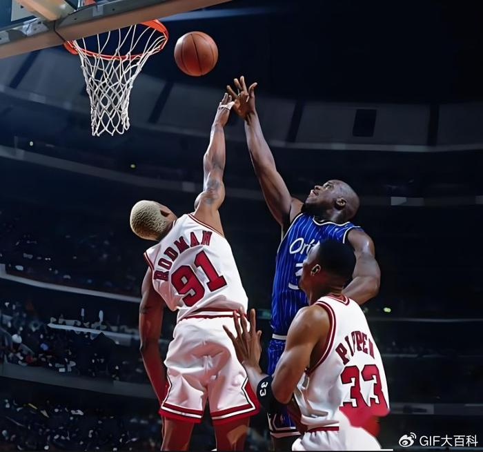 硬刚奥尼尔,辅佐篮球之神乔丹完成第二个三连冠,罗德曼的篮板王