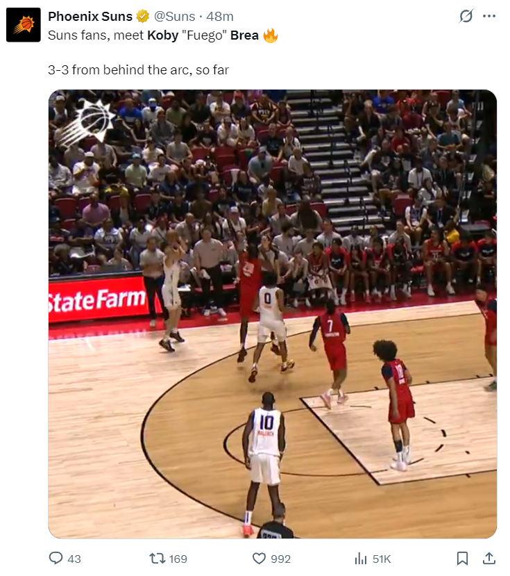 太阳媒体:我相当有信心,科比-布雷亚在本赛季会为太阳队带来实质性的贡献。他不仅是一名具备征战 NBA 赛场实力的射手,更是一位顶尖射手。单凭这一项技能,就足以让他获得顶级联赛的出场机会。